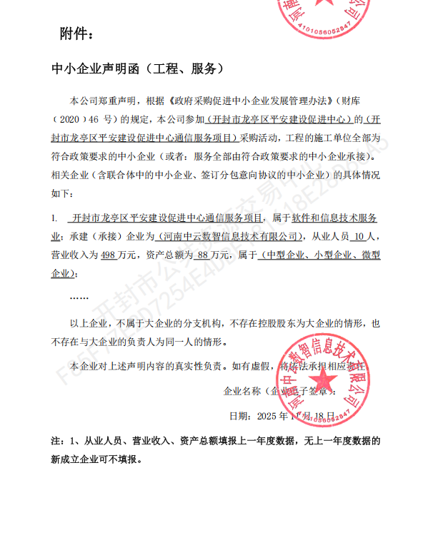 1 开封市龙亭区平安建设促进中心通信服务项目 为龙亭区116个网格提供通信技术及配套应用及服务 合格,符合国家及相关行业标准 7天 合格,符合国家及相关行业标准